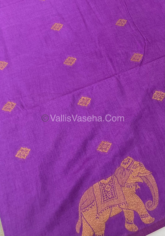 Pure Korvai Silk Cotton Saree - with Mango Yellow With Purple Combo - VVKSC004