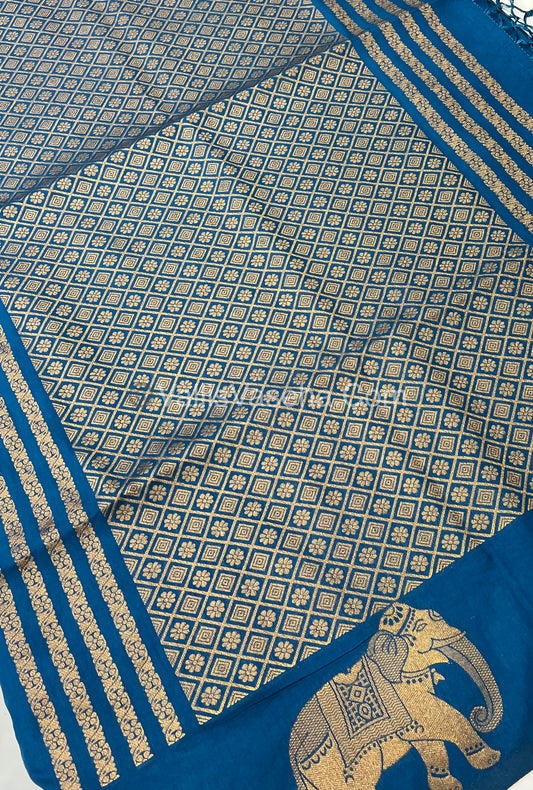 Semi Soft Silk - Peacock & Mango Butta Border - Blue Shade -VVSSS015