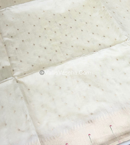 Semi Raw Silk - Paithani Design Weaving - Cream Shade - VVRS005