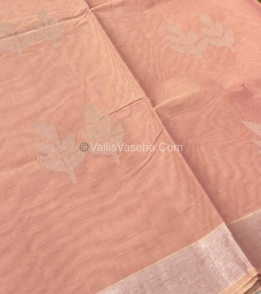 Kanchi Semi Silk - Elephant Border& design - Cream with Peachish Pink - VVSSS005