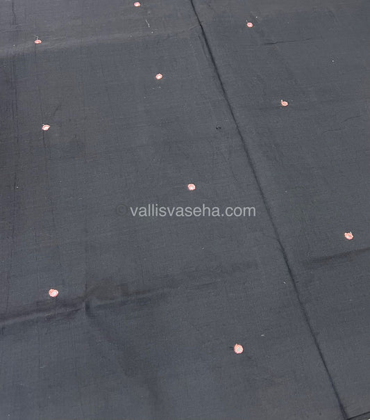 Poly Silk Mixed Cotton - Mirror Work Embroidery - Black with Pink - VVPCM001