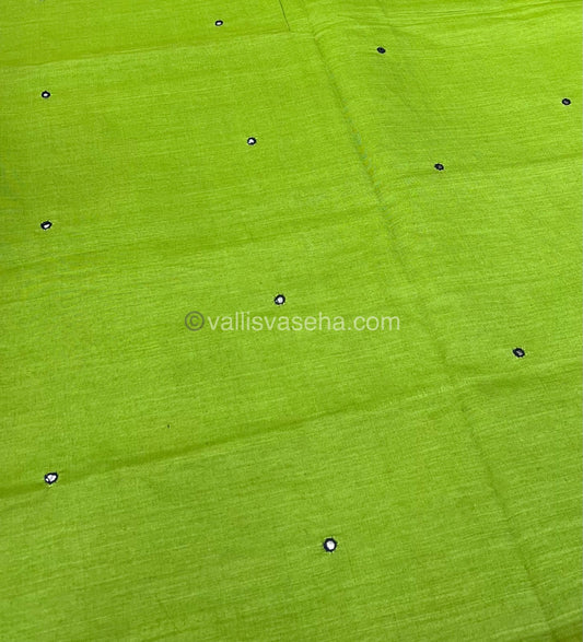 Poly Silk Mixed Cotton - Mirror Work Embroidery - Green with Navy Blue - VVPCM001