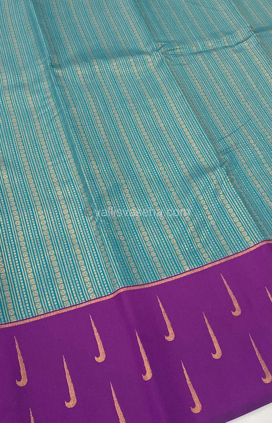 Kanchi Semi Silk - Ramar Blue with Purple - VVKSS001
