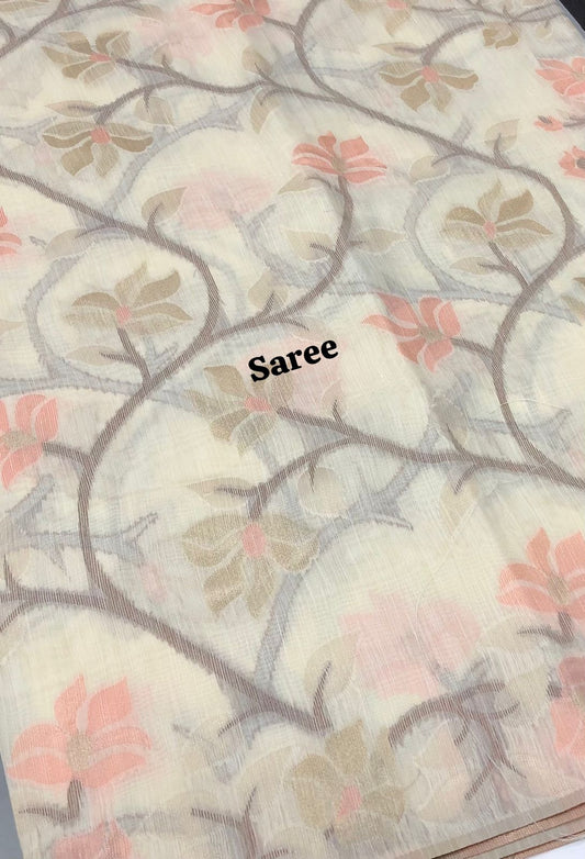 Semi Raw Silk with Jamdhani Design Weaving - Cream Shade - VVRS001