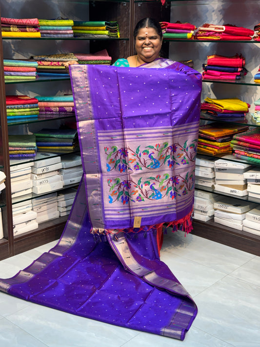 Semi Raw Silk - Paithani Design Weaving - Violetish Purple Shade - VVRS005