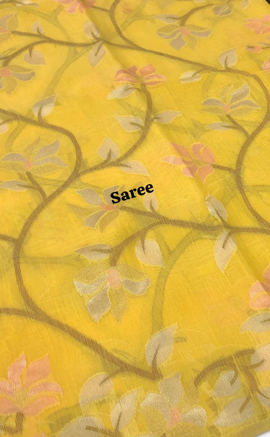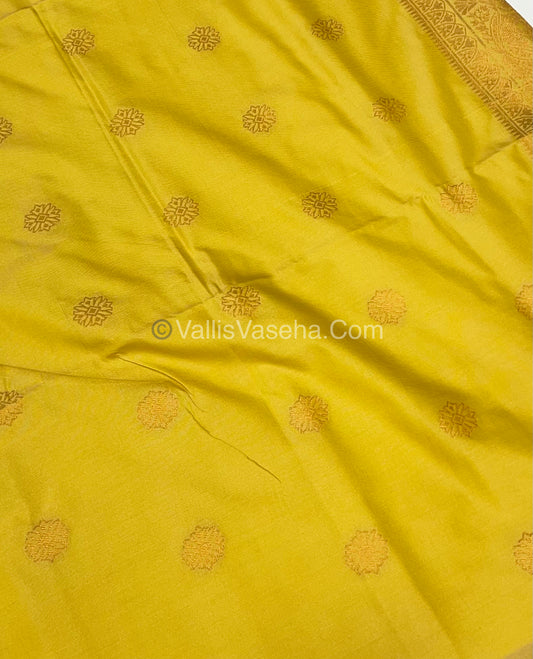 Semi Raw Silk with Jamdhani Design Weaving - Yellow Shade - VVRS001