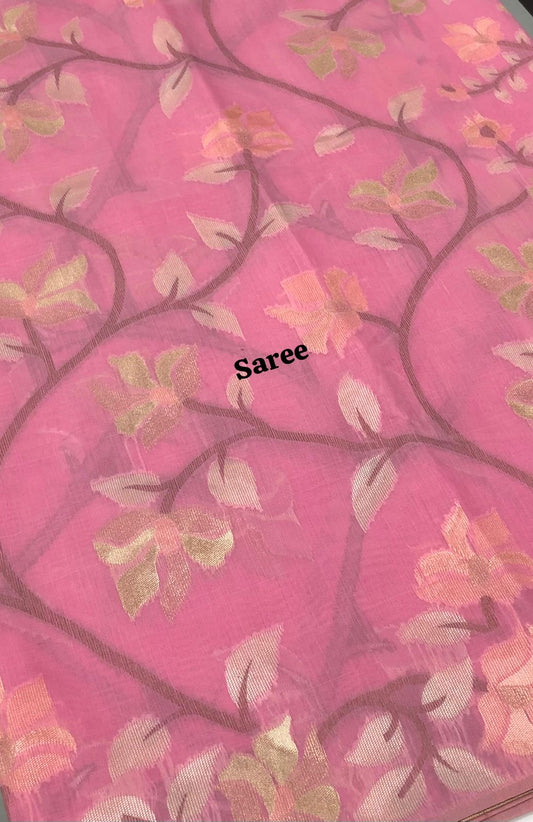 Semi Raw Silk with Jamdhani Design Weaving - Pink Shade - VVRS001