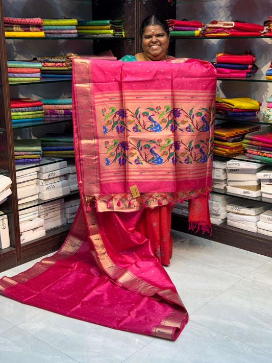 Semi Raw Silk - Paithani Design Weaving - Pink Shade - VVRS005