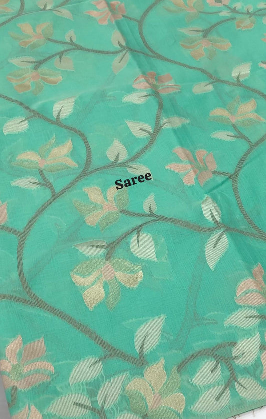 Semi Raw Silk with Jamdhani Design Weaving - Sea Green Shade - VVRS001