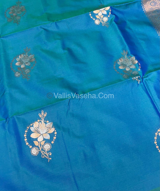 Semi Soft Silk - Border less - Double tone Peacock Blue Shade -VVSSS007