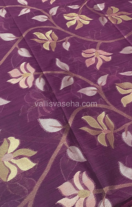 Semi Raw Silk with Jamdhani Design Weaving - Purplish Wine Shade - VVRS001