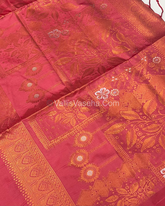 Semi Soft Silk - Border less - Peachish Pink Shade -VVSSS007