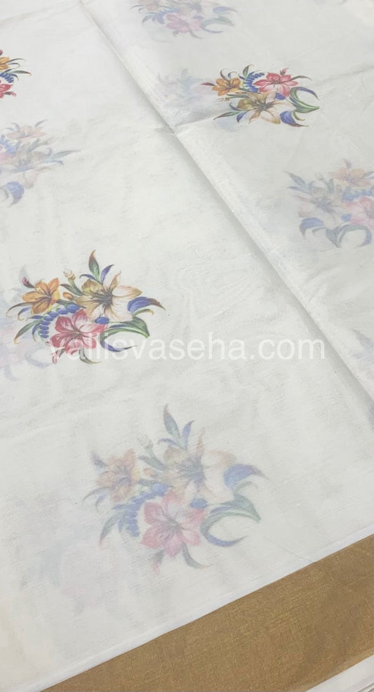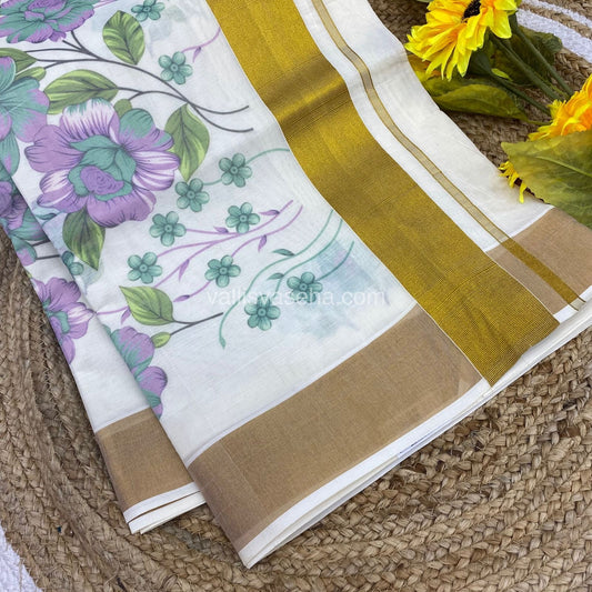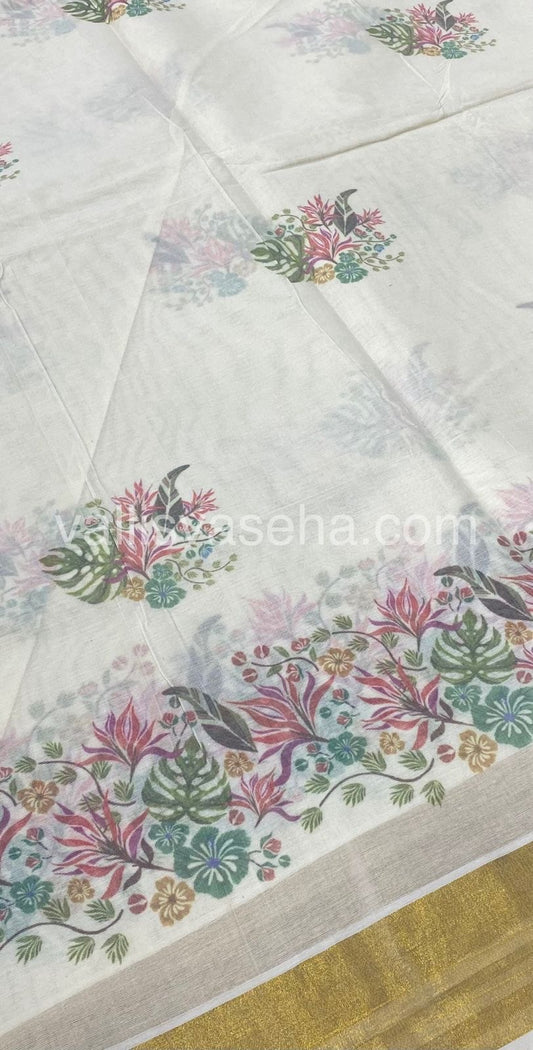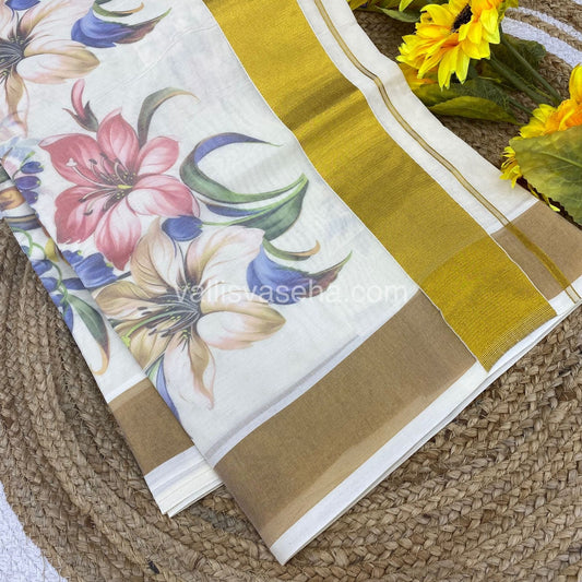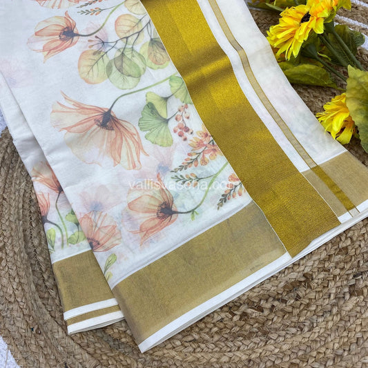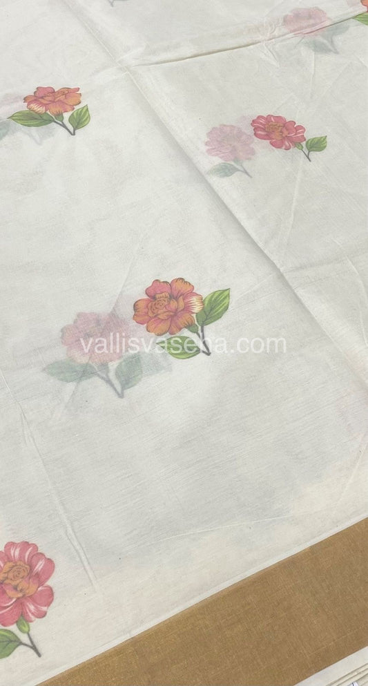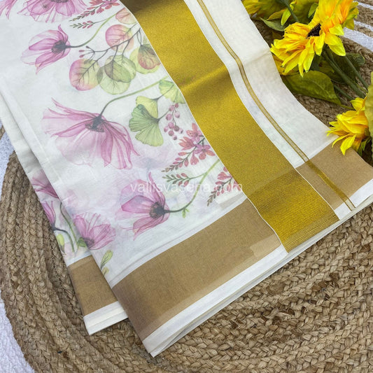 Kerala Cotton Saree - Cream With Golden Border - VVKCS001