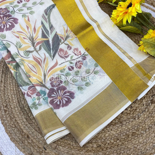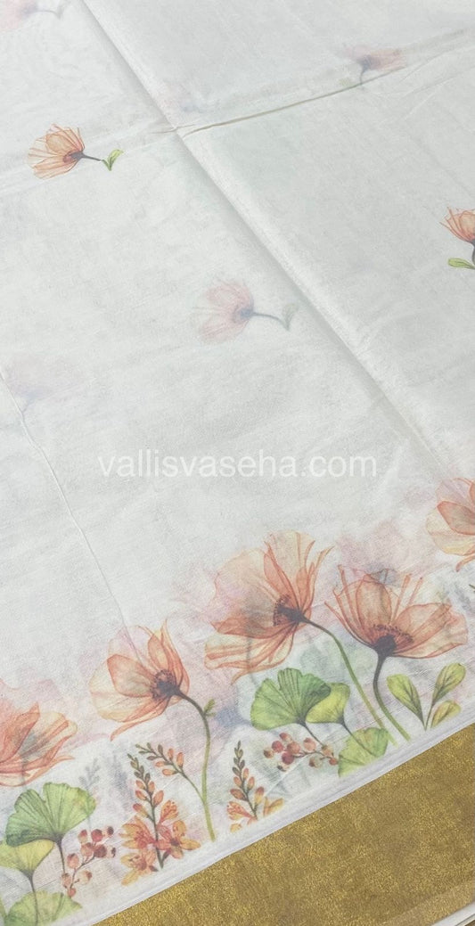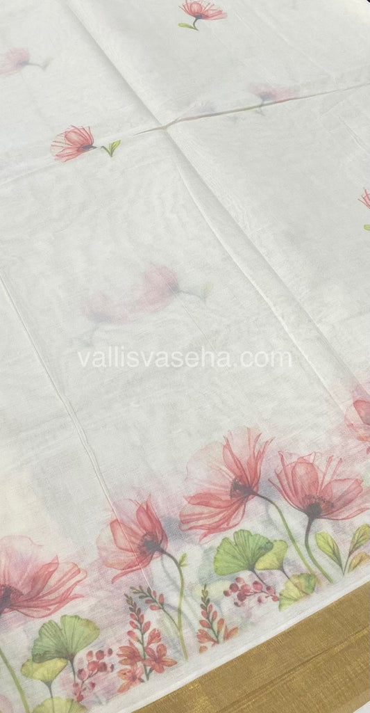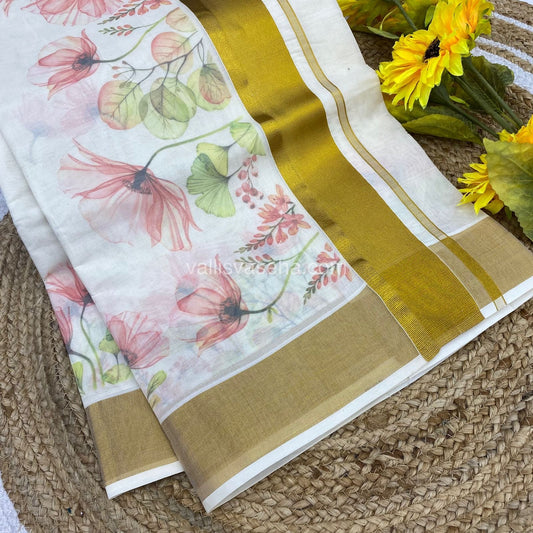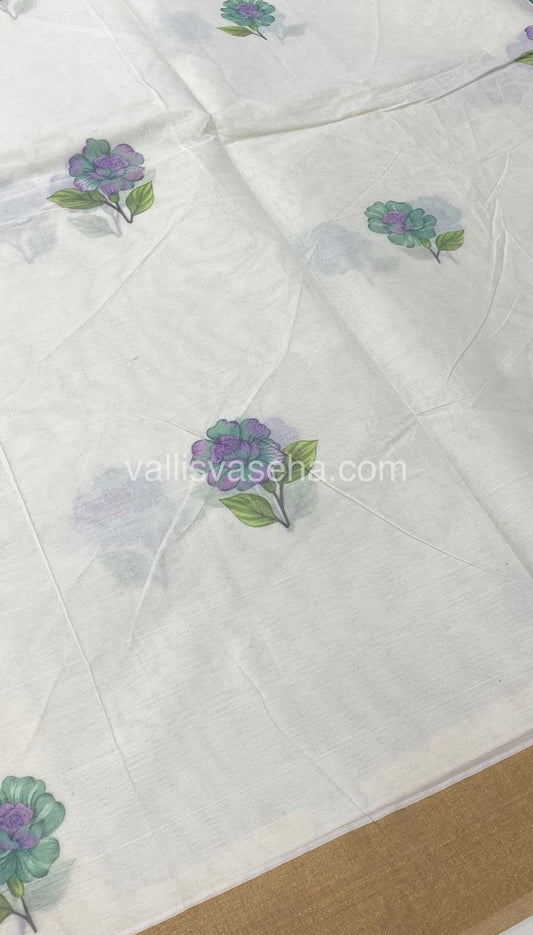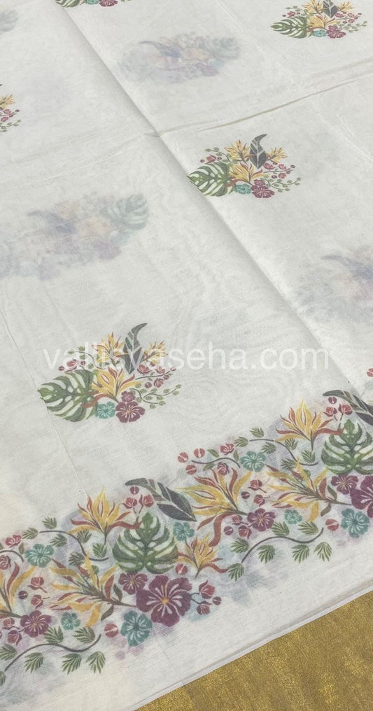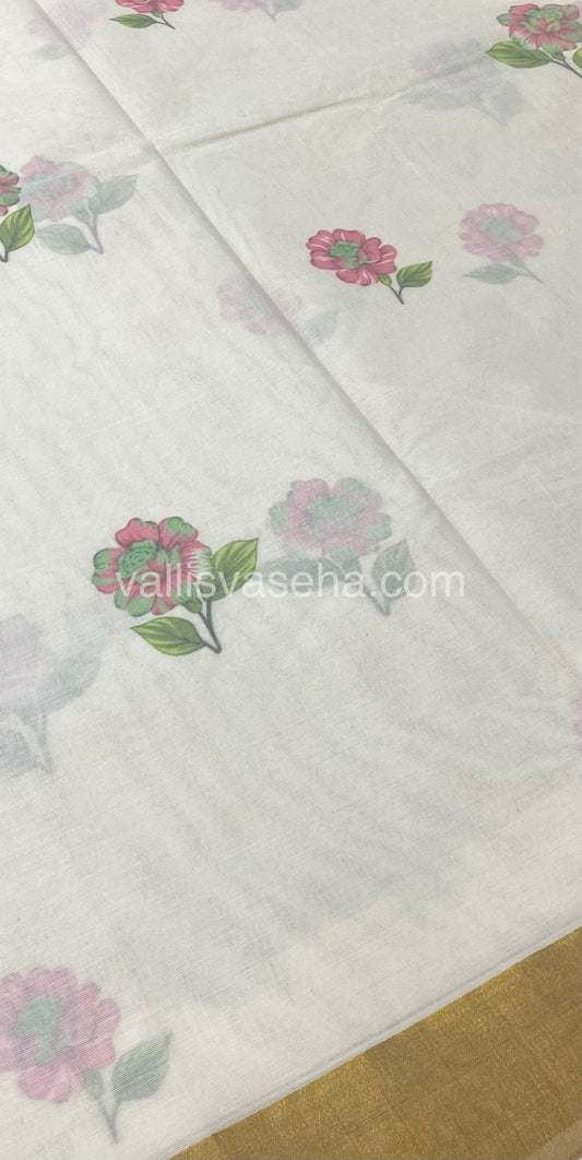 Kerala Cotton Saree - Cream With Golden Border - VVKCS001