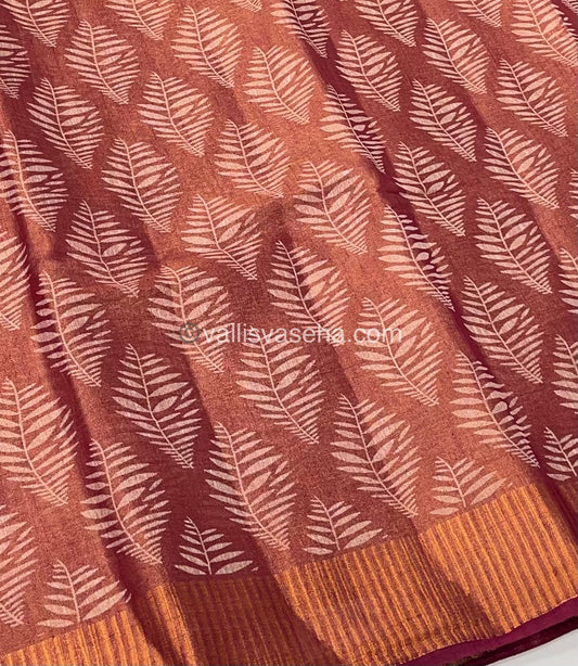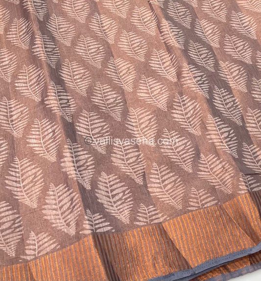 Semi Tussar with beautiful Prints - Chocolate Shade - VVST001