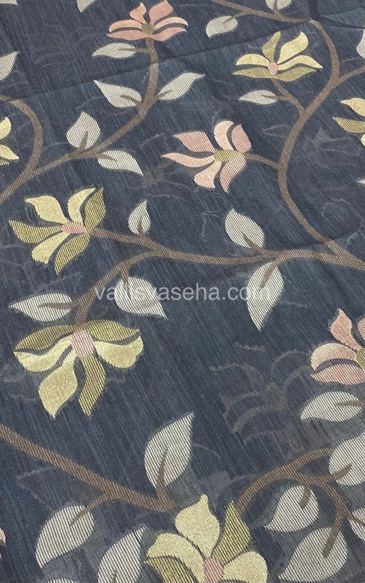Semi Raw Silk with Jamdhani Design Weaving - Dark Grey Shade - VVRS001