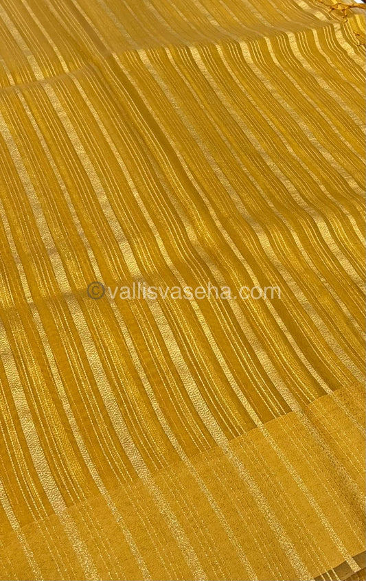 Semi Tussar - Ganga Jamuna Border - Mustard Yellow & Blue Combo - VVCS003