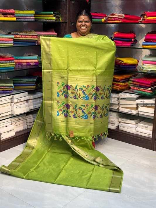 Semi Raw Silk - Paithani Design Weaving - Green Shade - VVRS005