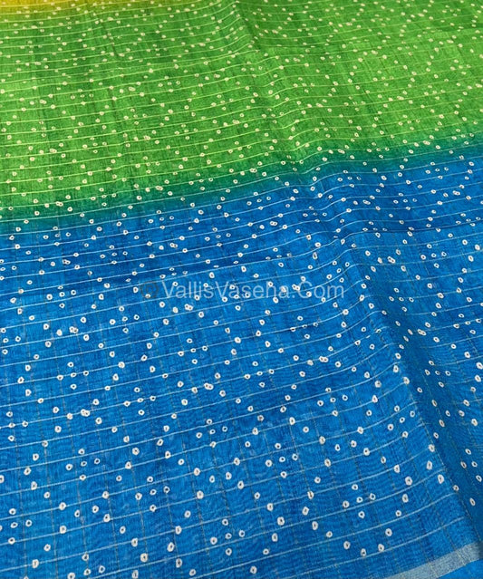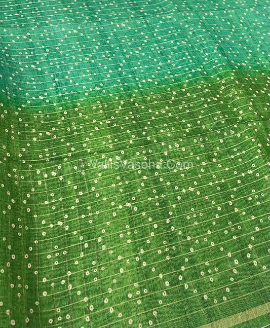 Semi Chanderi Saree - Green & Green Combo - VVSCS003