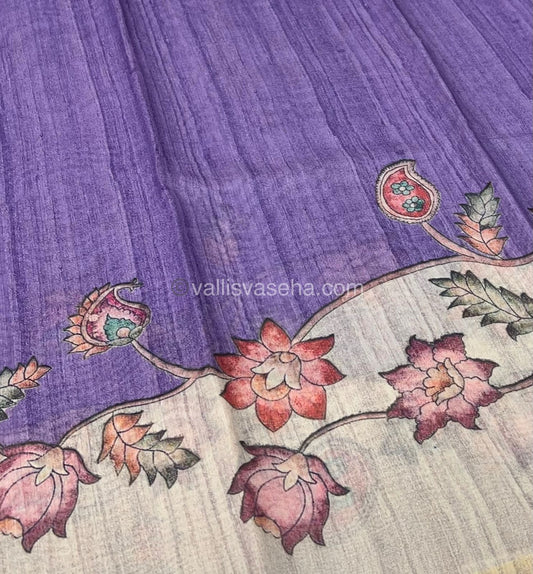 Semi Chanderi Saree - Cream & Purple Combo - VVSCS003