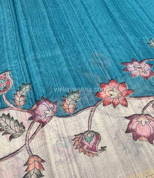 Semi Chanderi Saree - Sea Blue & Ink blue Combo - VVSCS003
