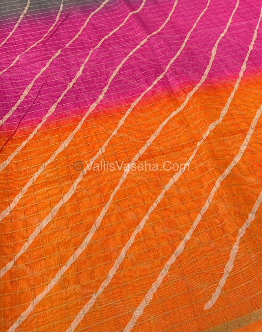 Semi Chanderi Saree - Orange & Purple Combo - VVSCS003