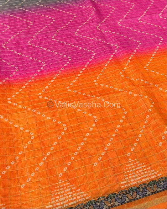 Semi Chanderi Saree - Fusion Of Bandhini & Madhubani- VVSCS002