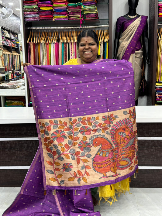 Semi Matka Tussar Silk Saree - Tie & Dye pattern - Purple Shade - VVSMT001