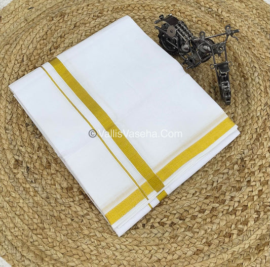 Dhoti - White - Gold Border - Double Layer - VVDH001