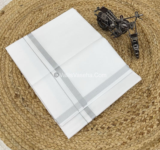 Dhoti - White - Silver Border - Double Layer - VVDH001