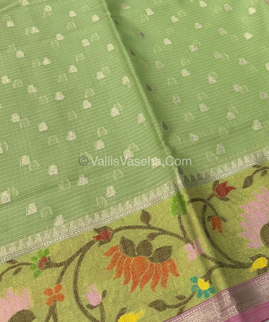 Kota Saree - Paithani Border - Pista Green with Pink - VVKPS001