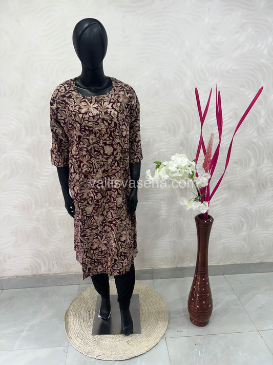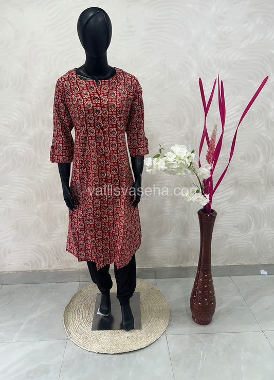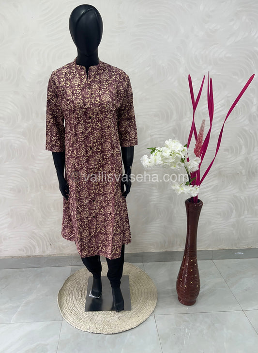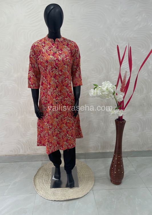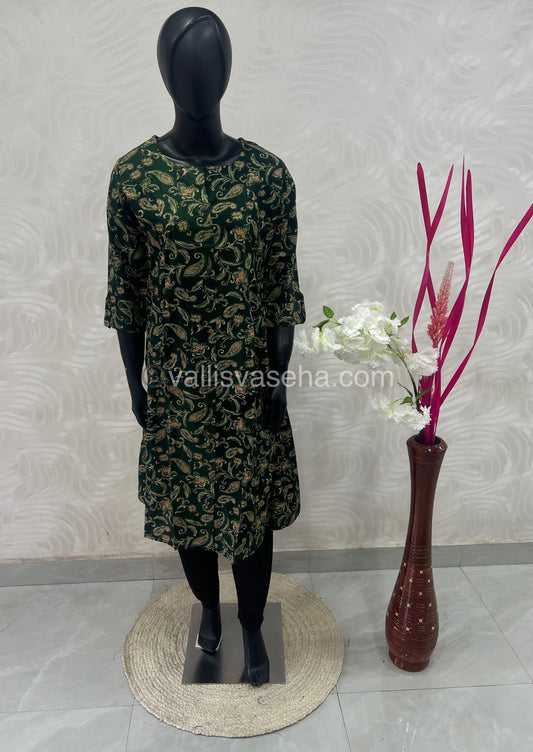 Slub Cotton - Printed Kurti - A - Line Cut - VVALK001