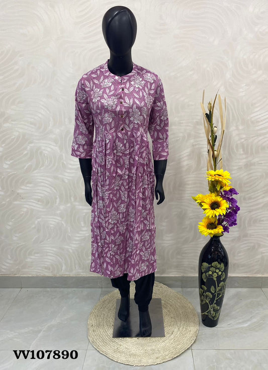 Umbrella Slub Cotton Printed Kurti - Pink Shade - VV107890