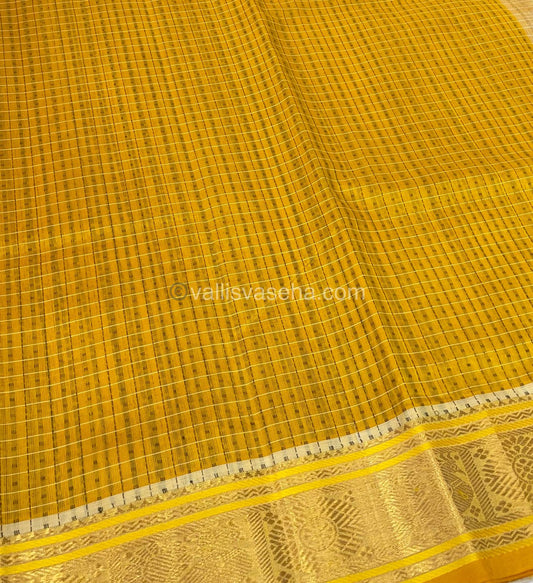 Pure Silk Cotton Saree - Yellow With Cream - Lakshadeepam Design - VVPLD001