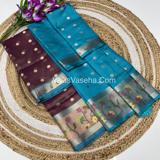 Unstitched - Lehenga Material - Zari Kota Tissue - Wine Purple & Blue - VVULM001
