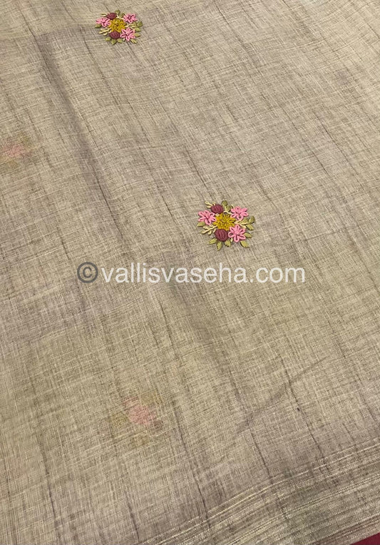 French Knot - Tissue Saree - Cream With Grey Shade - VVLFN001