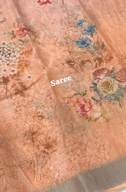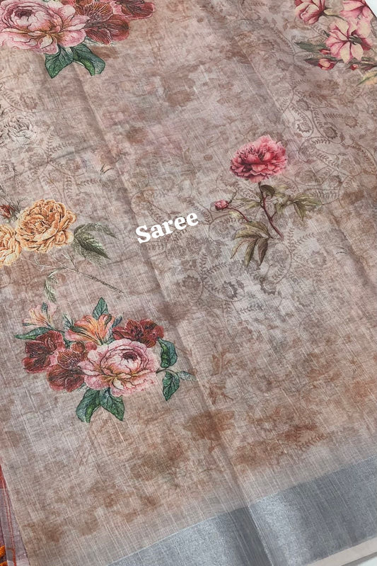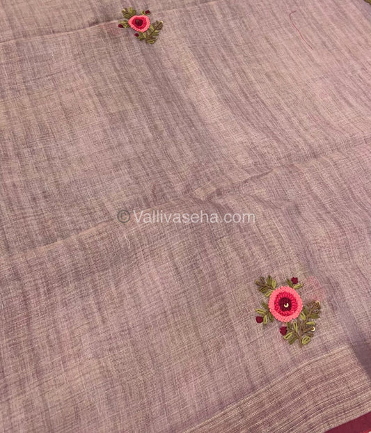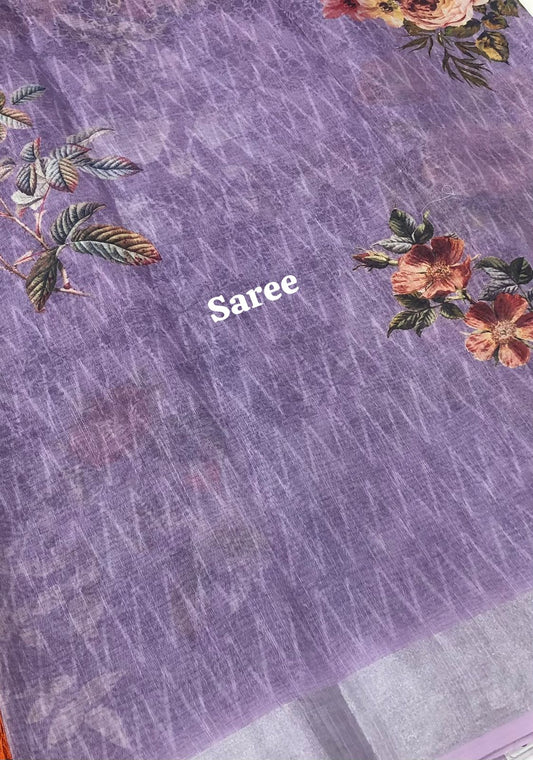 Floral Linen Cotton Saree - Dark Lavender Shade