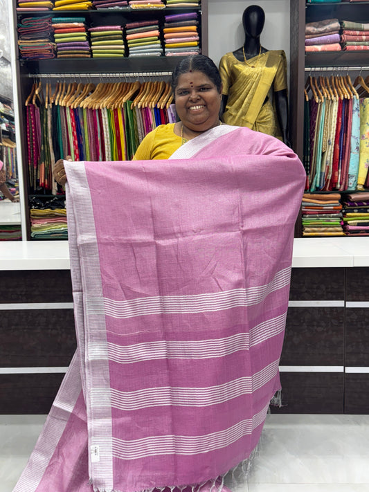 Linen Mixed Jute Silk Saree - Pink Shade - VVLMJ001