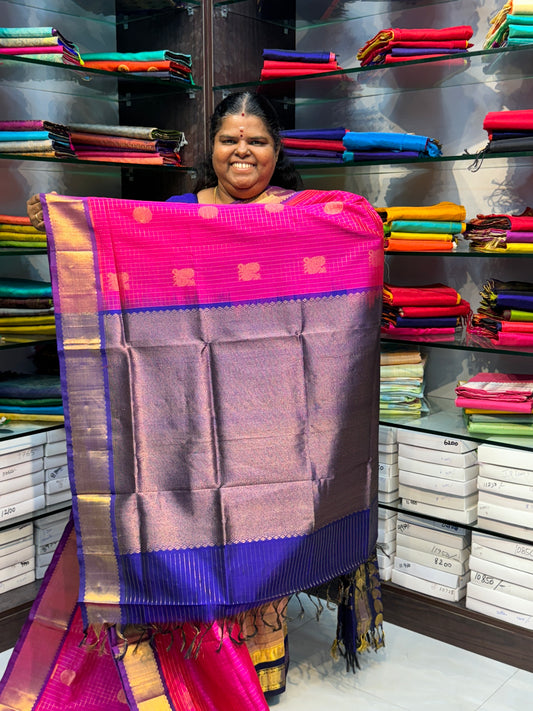 Pure Silk Cotton Saree - Mayil & Chakkaram Design - Pink with Blue Combo - VVMC002