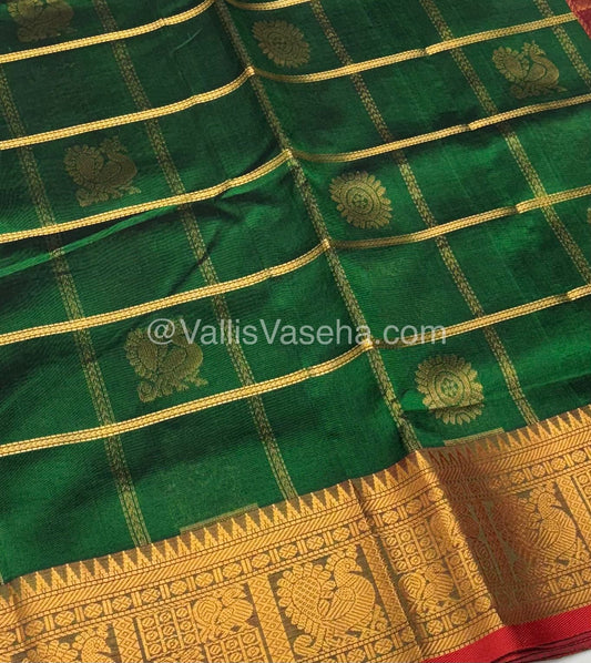 Pure Silk Cotton Saree - Mayil & Chakkaram Design - Green With Red Combo -VVMC003