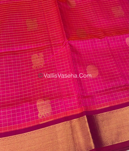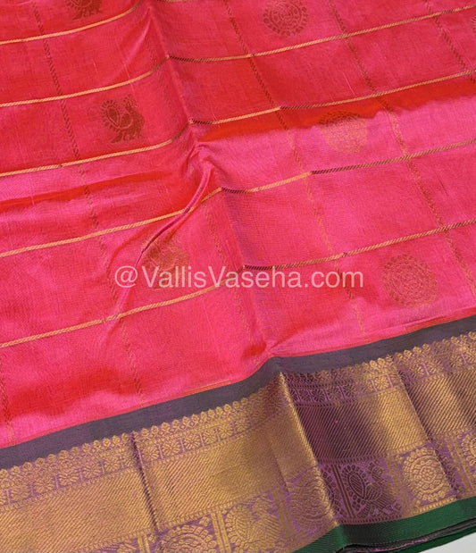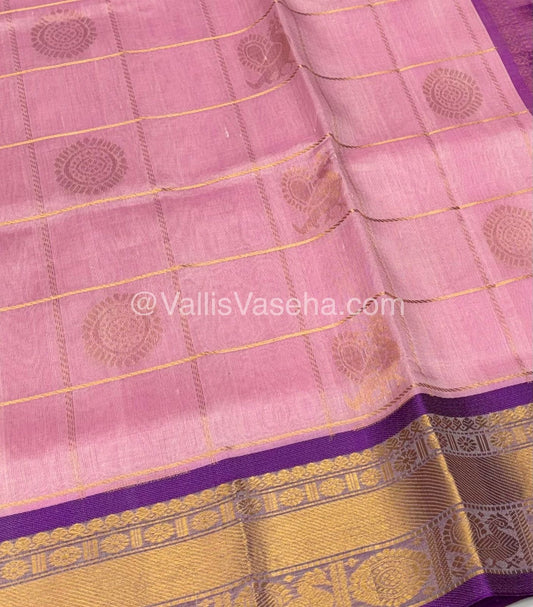 Pure Silk Cotton Saree - Mayil & Chakkaram Design - pink with purple - VVMC001