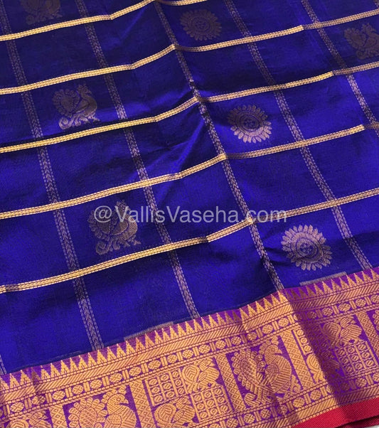 Pure Silk Cotton Saree - Mayil & Chakkaram Design - Blue With Red Combo -VVMC003