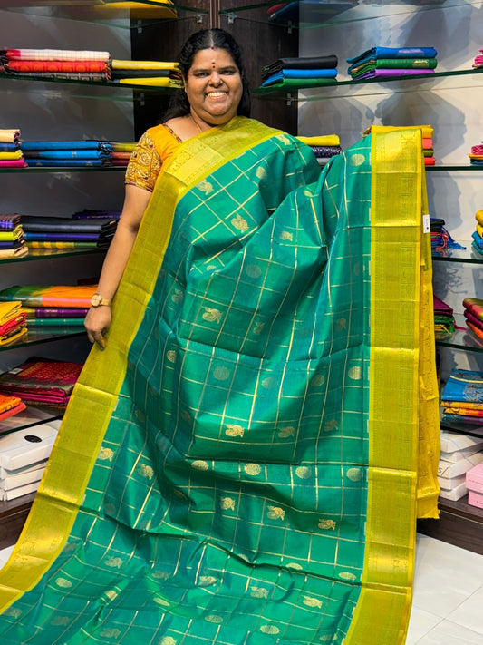 Pure Silk Cotton Saree - Mayil & Chakkaram Design - Green with Lemon Green - VVMC001