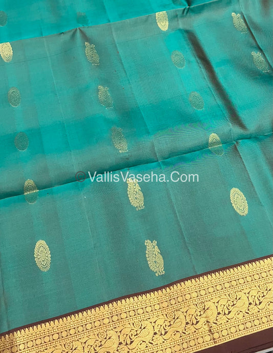 Pure Korvai Silk Cotton Saree - Black with Teal Greenish Blue Combo - VVKSC004