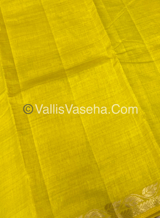 Semi Tussar Silk - Lemon Yellow Mixed Light Green Shade - VVSTS003