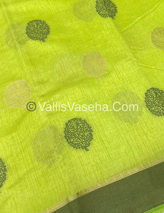 Semi Tussar Silk Saree - Light Pista / Lemon Green shade - VVSTS009