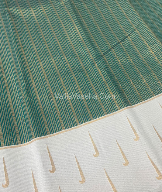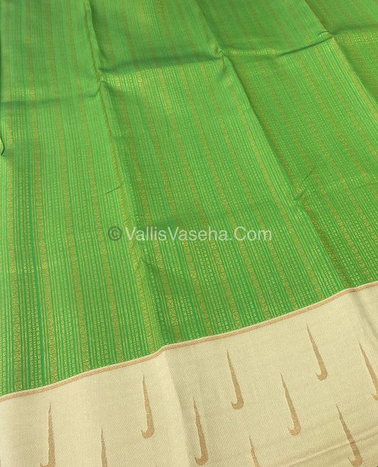 Kanchi Semi Silk - Green with Cream VVKSS001