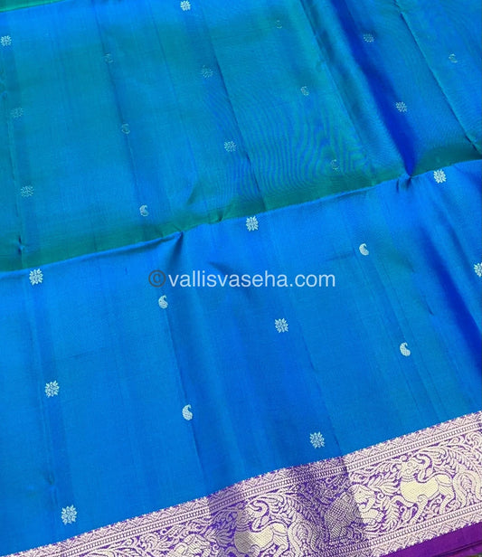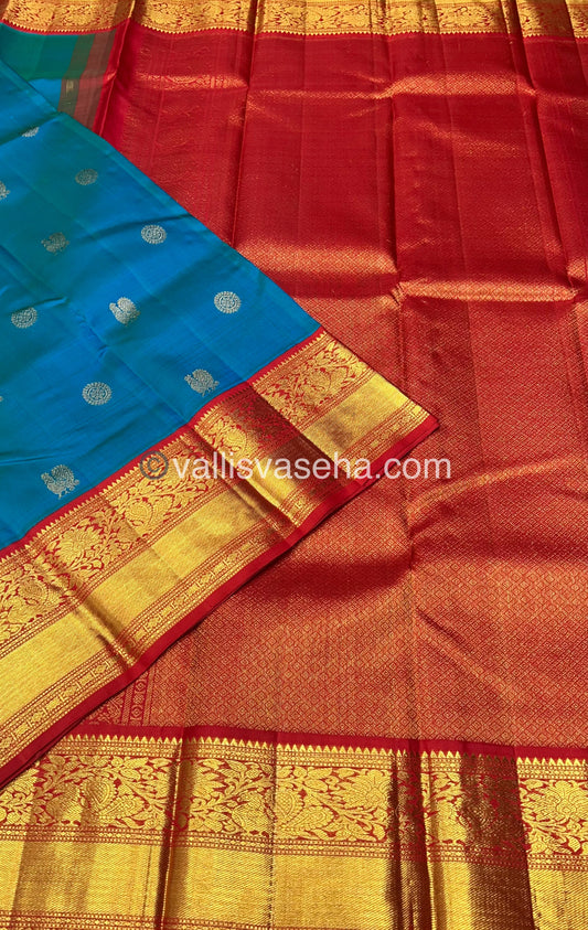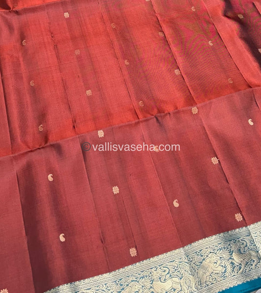 Pure Kanchipuram Silk Saree - Blue with Reddish Orange Shade - VVPS010