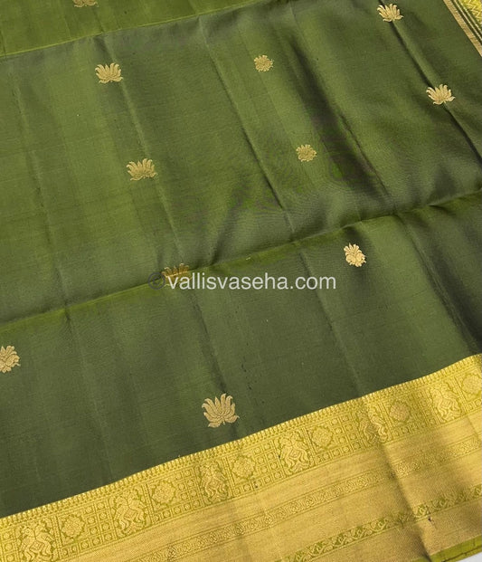 Pure Korvai Silk Cotton - Zari checks lines - Grey & Green Combo - VVKSC010