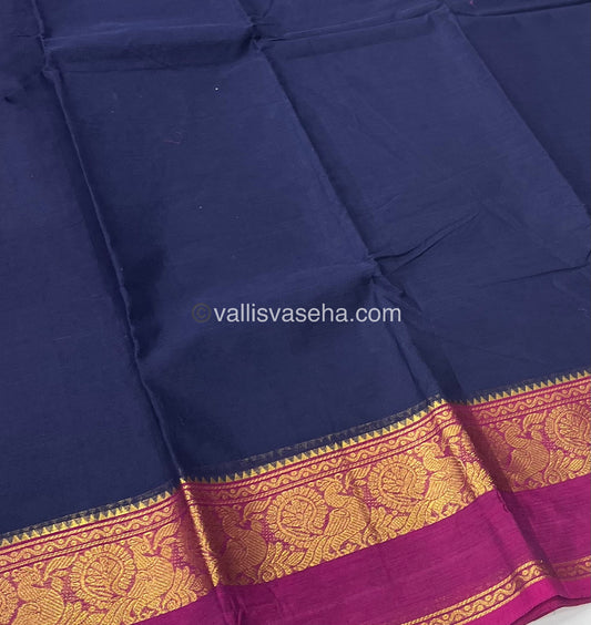 Pure Korvai Silk Cotton - Zari checks lines - Blue & Blue Combo - VVKSC010